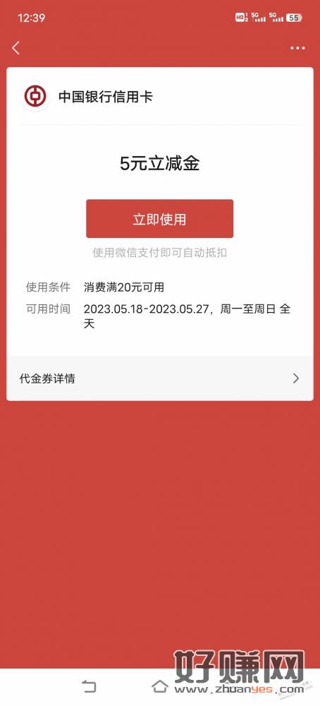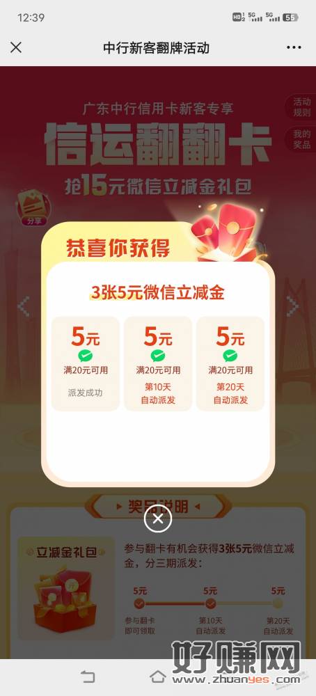 【中国银行】信运翻翻卡,15元微信立减金轻松拿。新客户成功办理中行xing/用卡即可领取。活动名额有限,先到先得。详询:中国银行APP—生活—E卡惠,点击轮播图“信运翻翻卡”。退订请回复TD至本号码。