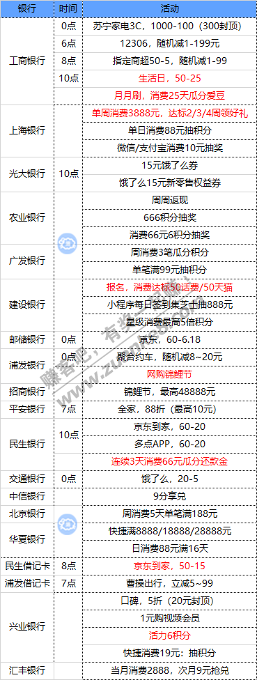 6月3号周三 各大银行活动优惠