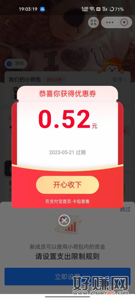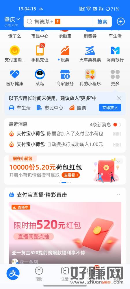 zfb在首页搜索民生之家,进去做任务抽取5个红包,保底2.8
