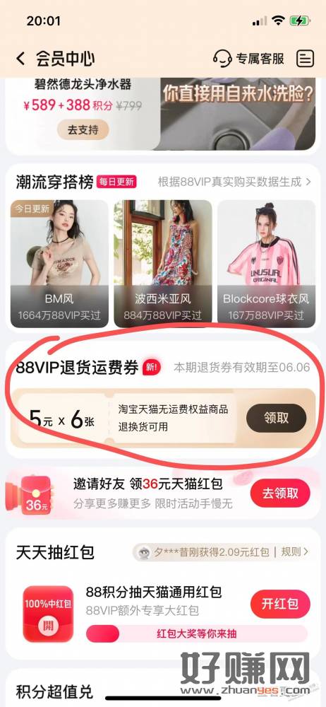 淘宝-我的-会员中心-88VIP会员可领5元×6张退货运费券