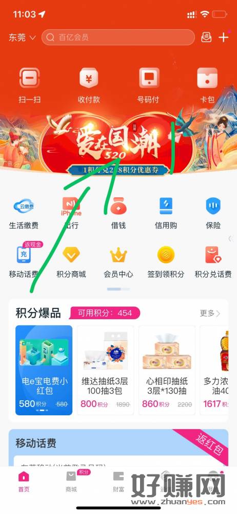 首页~爱在国潮~下拉找到积分元宇宙~快捷导航~点我得积分