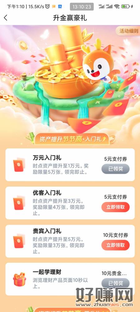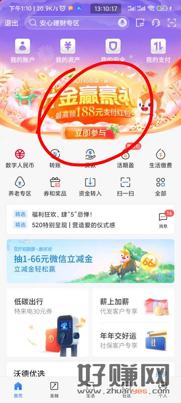 20块 交行首页横幅 转进5万 可以领20贴金券 领完立马转