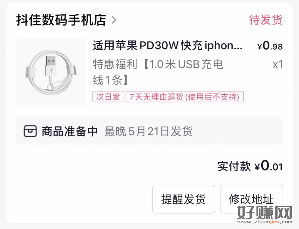 抖音0.01包邮苹果1米数据线,冲冲冲