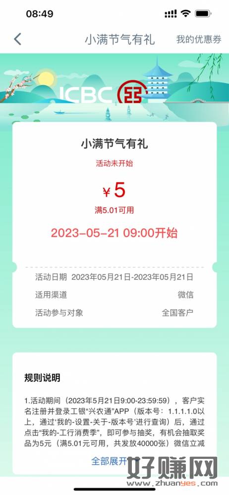 工行首页-点开选择地区分会-完成访问二个任务-给一个优惠券,