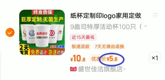5.8元!拍最后一个选项,100只加厚一次性纸杯