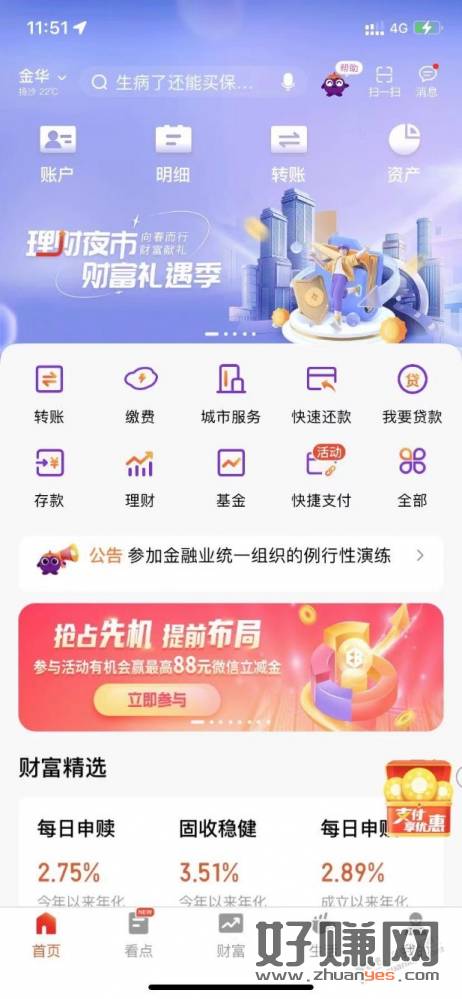 工行首页-点开选择地区分会-完成访问二个任务-给一个优惠券,