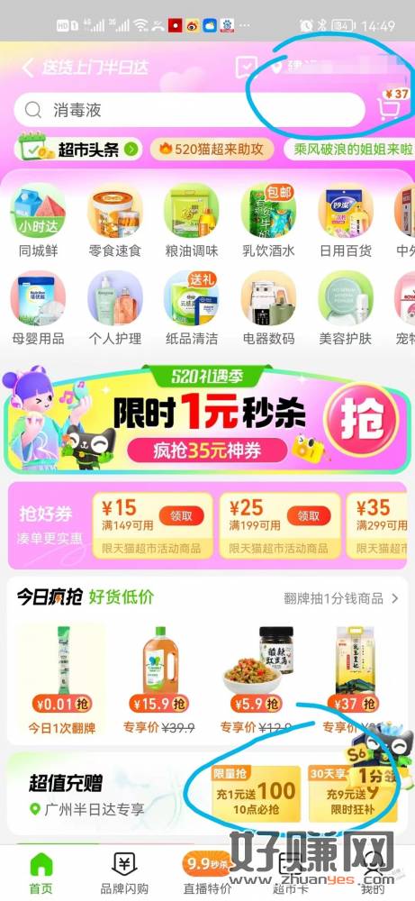 天猫超市卡充9送9