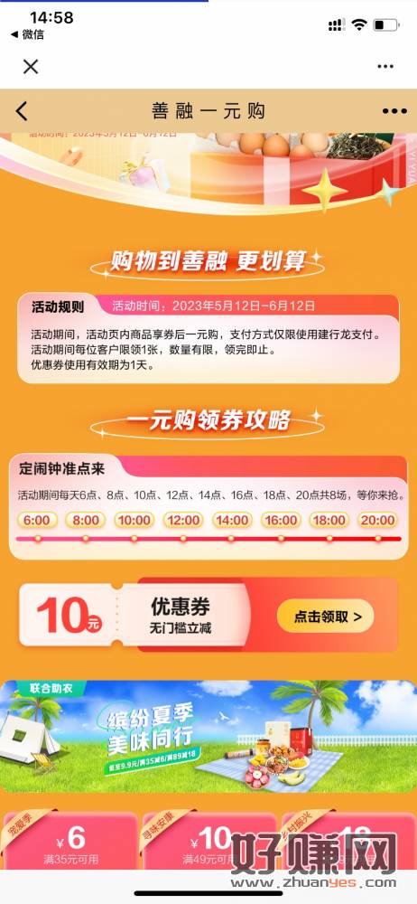建行12/14/16/18/20点抢10亓无门槛券,页面下拉随便点个商品都是1亓包邮到手