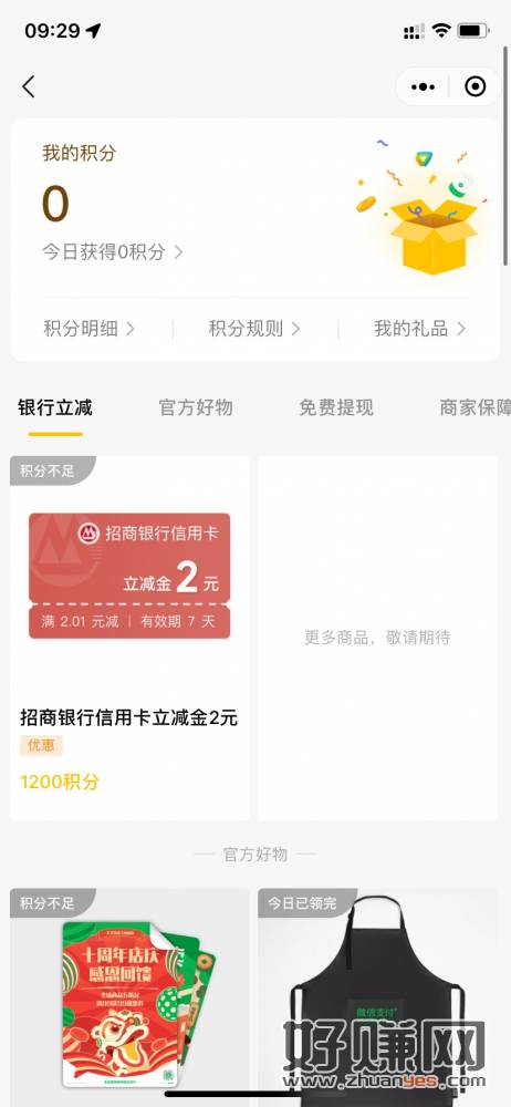微信收款小账本积分兑换2元招商xyk立减金,满足条件的可以看