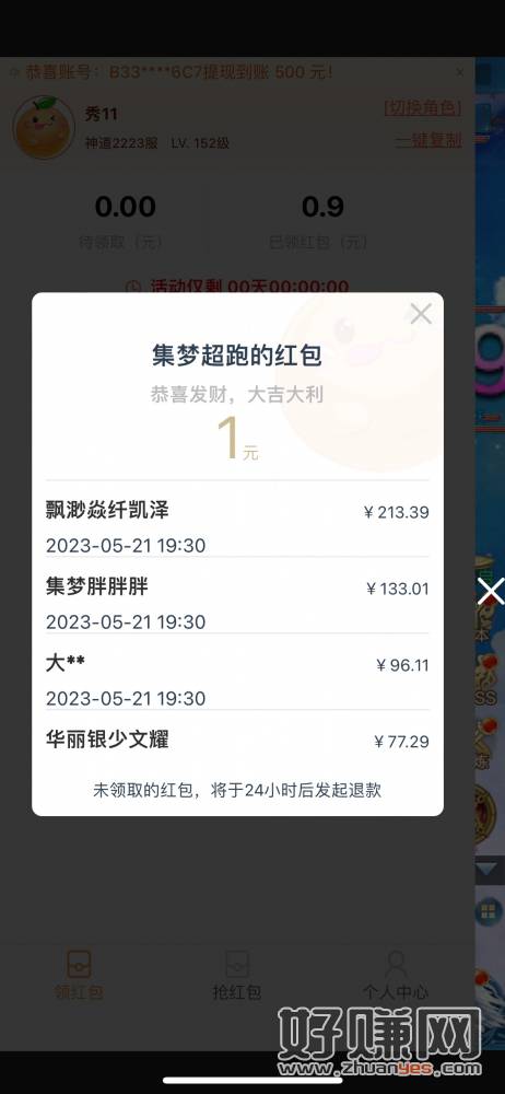 去薅5个2元红包大小号