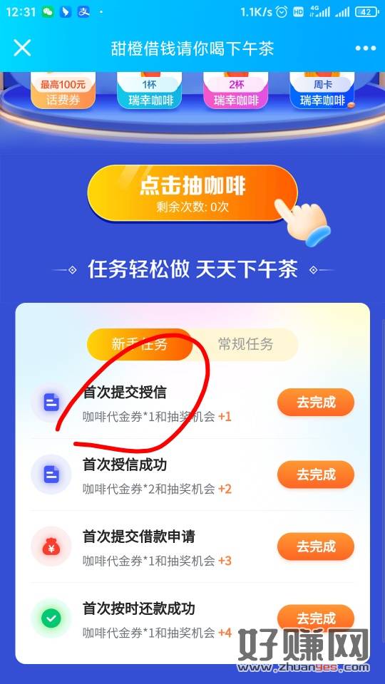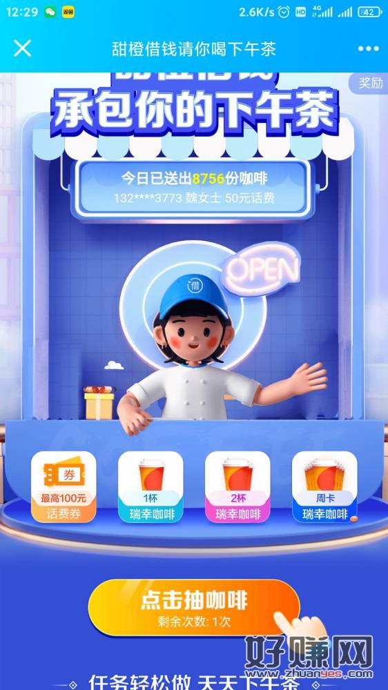 电信抽咖啡或者话费,第一个授信过不过都给32瑞幸兑换券