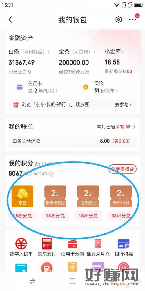 京东app最新版,我的,钱包,下拉看到如图所示,跳转京东金融app兑换。