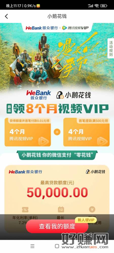 按照活动申请小鹅花钱,复制卡号绑定微信。支付0.01,绑定证件完成这两部可以领取4个月,另外4个月需要提现500提现后,第二天提前还款没有利息,薅羊毛8个月