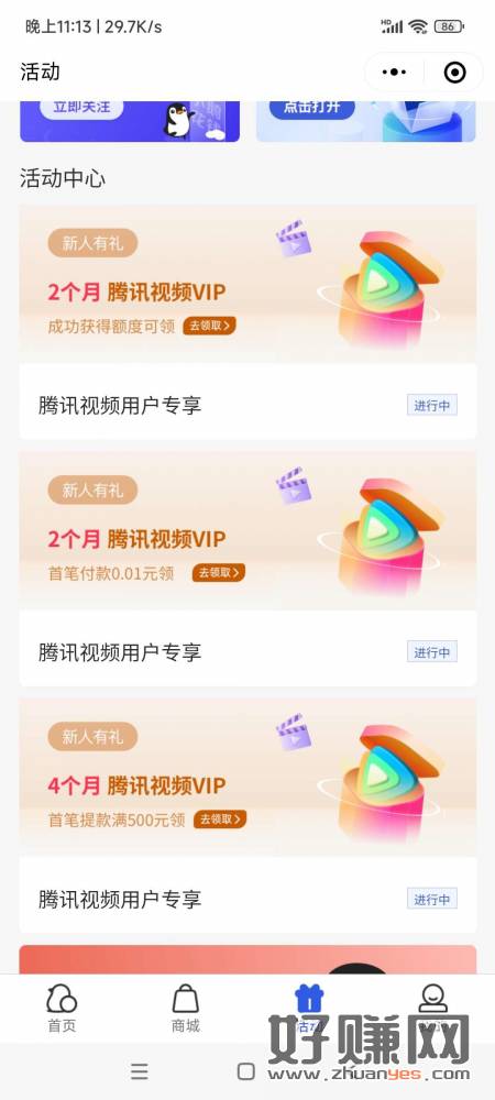 你们自己斟酌,我没搞,绑定腾讯视频会员公众号点击小鹅花钱会跳