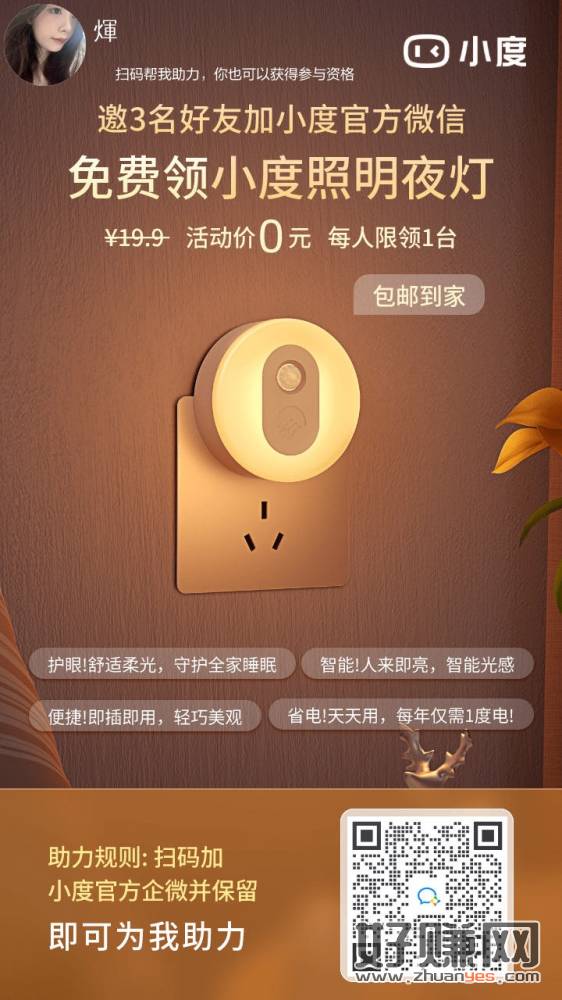 邀请3人领小夜灯,只能邀请3人,我这个应该是有人头的,助力了