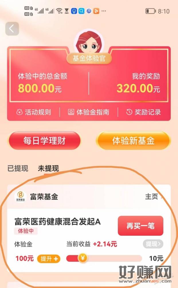 以下这个收益超2元,把理财芝士调升到500,提现10。