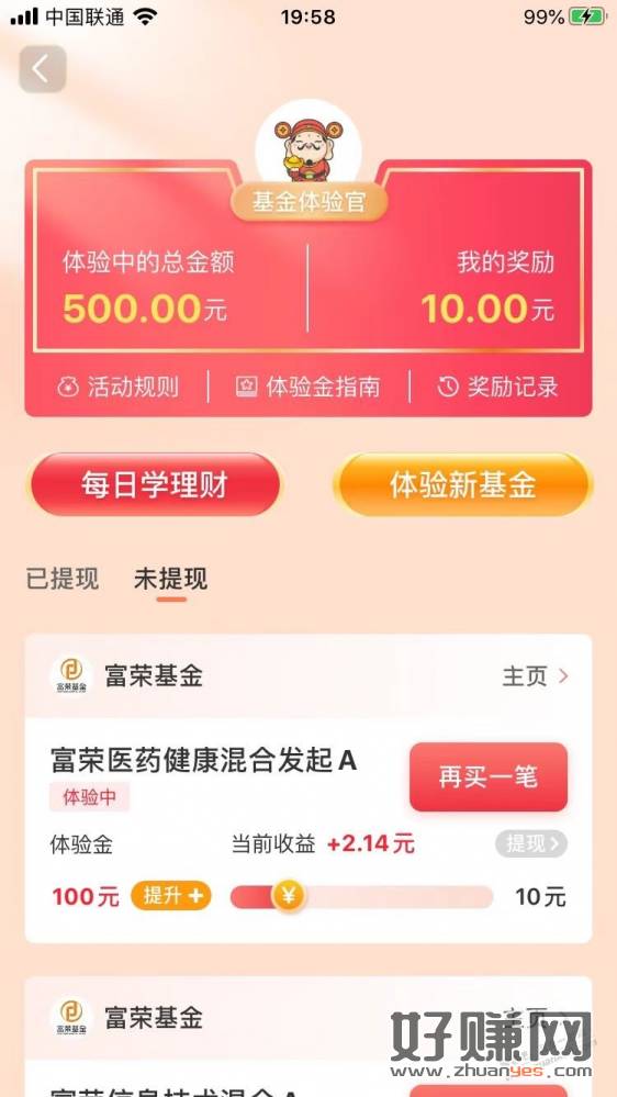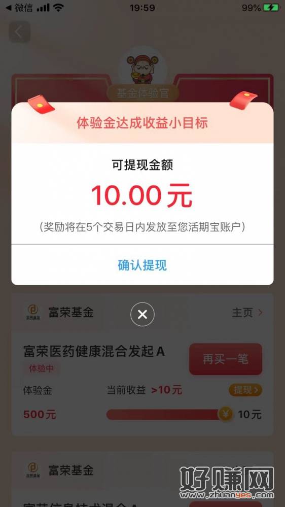 前几天领的“富荣医药”基金今天收益已超2元,用芝士提升5倍,秒提现10元到账户。