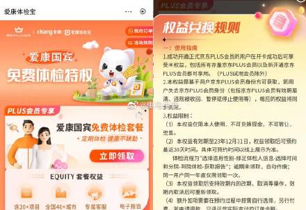 京东PLUS会员每年免费领爱康体检套餐,0元的爱康