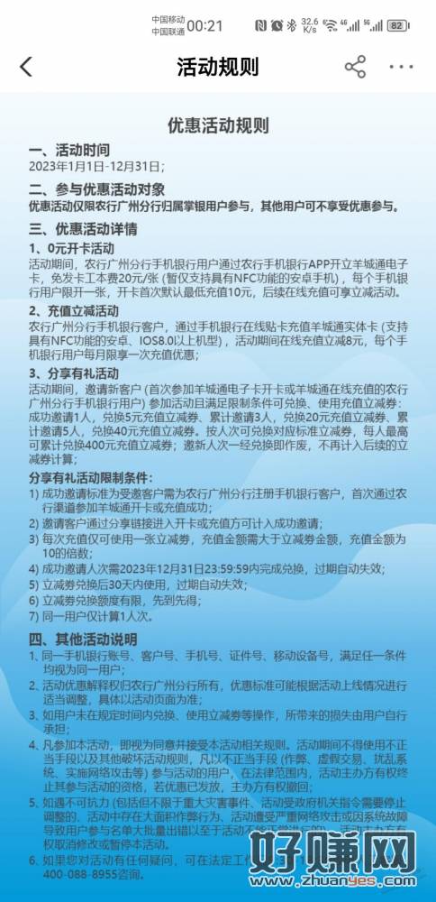 农业银行广州地区羊城通充值立减8元