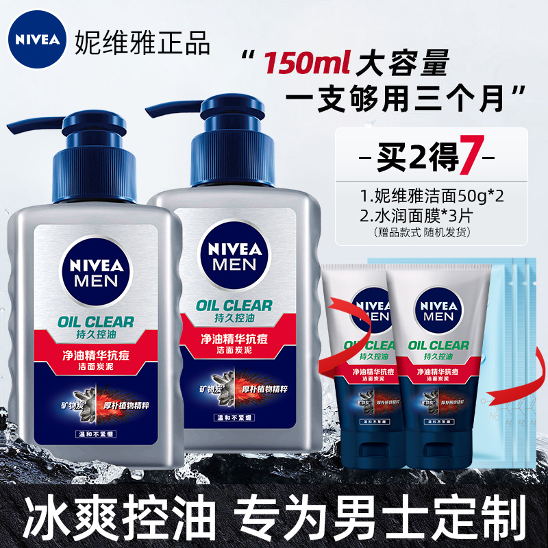 19.9元 nivea妮维雅优品阁专卖店 妮维雅男士专用洗面奶150g+洁面乳50g