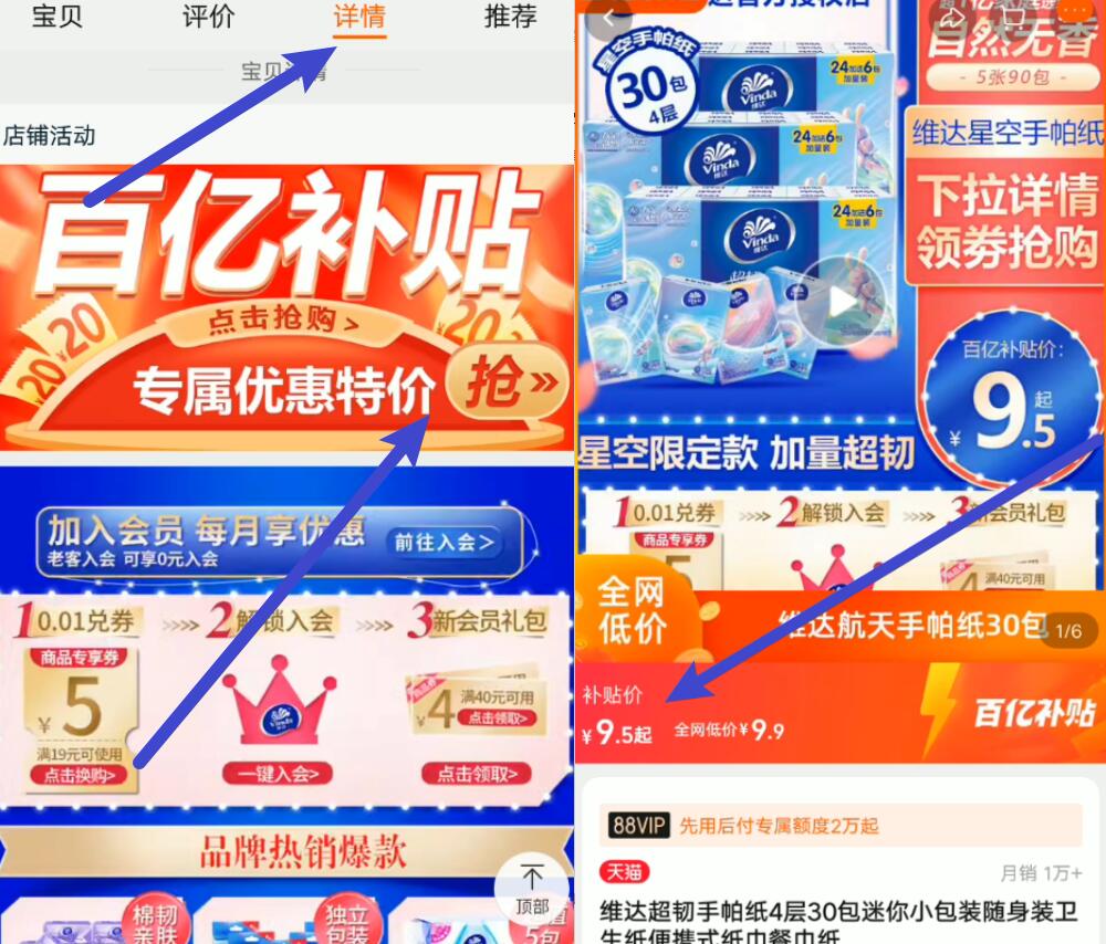 9.5元!百亿补贴好价,[ 维达 ]超韧手帕纸30包