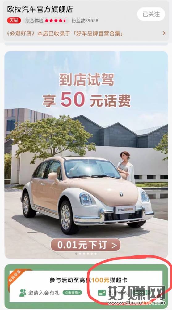 淘宝 欧拉汽车官方旗舰店首页 集卡赢好礼,可以领10元猫超卡