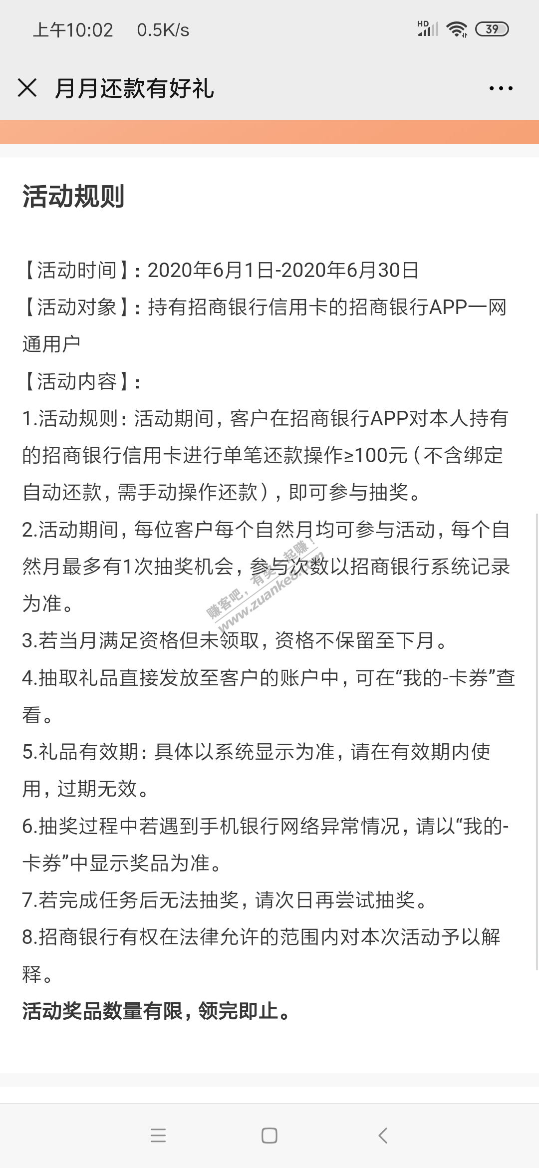<招行>月月还款有好礼(截止6月30日)