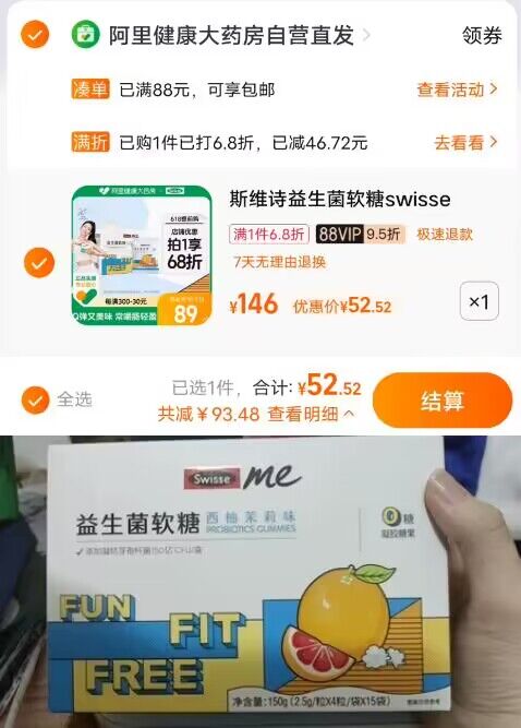 88vip52.5元!阿里健康,[ Swisse斯维诗 ]益生菌软糖60粒