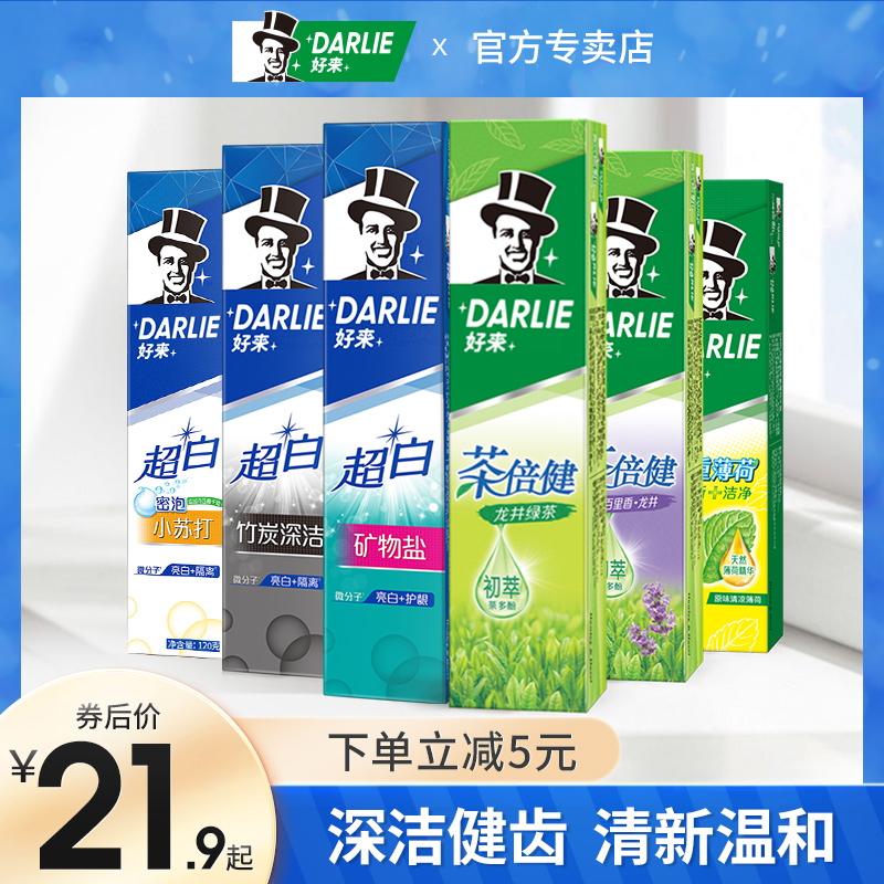 39.9元 DARLIE/好来 好来原黑人亮白双重薄荷牙膏组合 原味90g*2+薄荷味90g*2+茶倍健90g*2 +赠品(40g*3+25g*2)