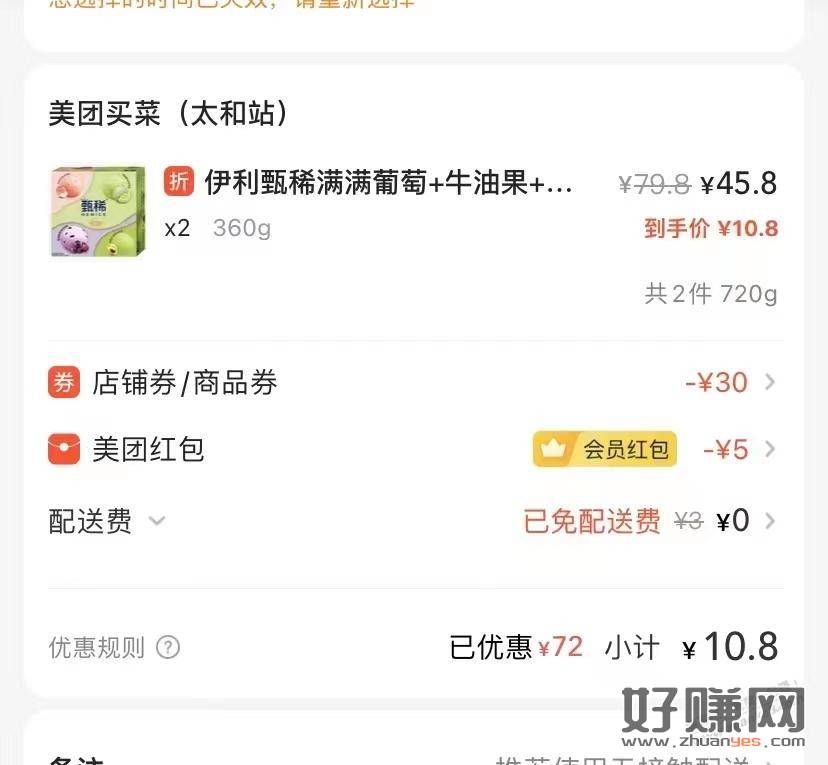 使用的时候,先选择49-10,然后就可以选择69-20,两张券叠加使用,最后,还可以用美团会员券,买到加果