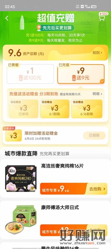 猫超充了九块送九块的,深圳地址补了个限时加赠3