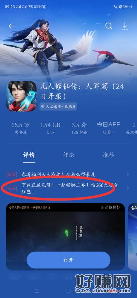oppo手机应用商店搜索凡人修仙传,下载打开抽奖