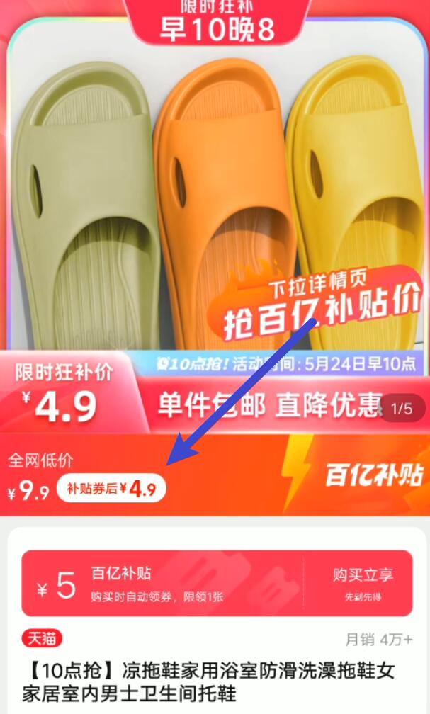 4.9元!百亿补贴专属,莱温斯羽凉拖鞋家用浴室防滑