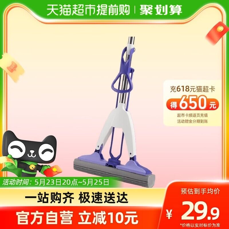 19.9元 猫超包邮 美丽雅免手洗胶棉挤水拖把