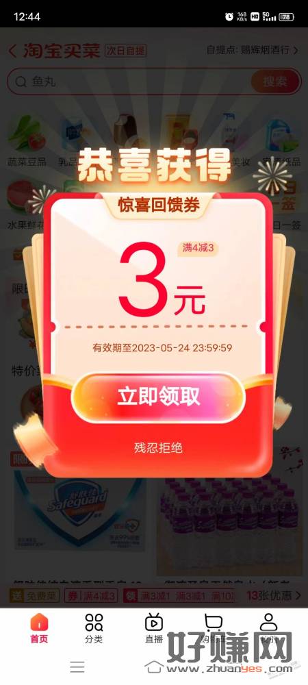 淘宝买菜4-3通用券!