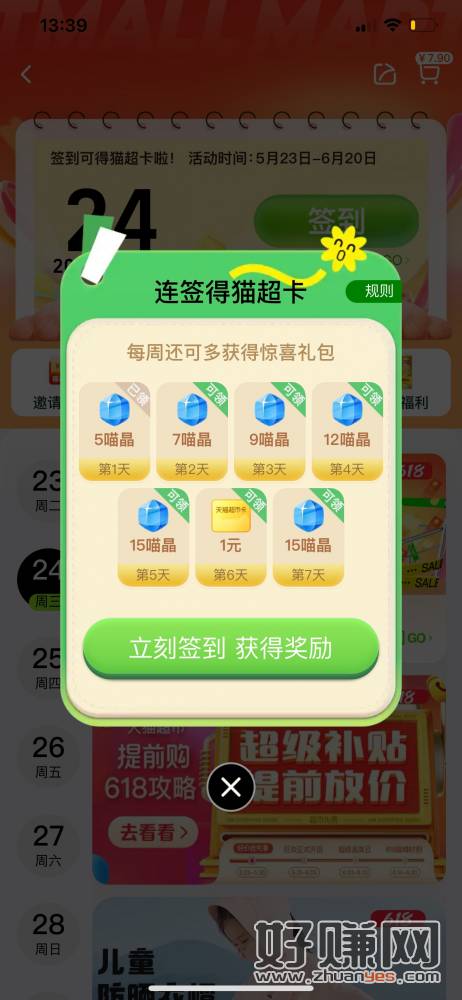 天猫超市每日签到累计1通用猫卡,天猫超市进粮油调味分区弹3品牌金、撸多点品牌金一样能薅。ios设备都弹了,安卓设备一张没出