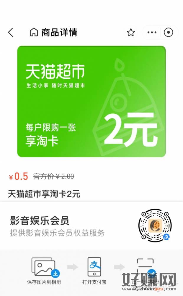 支付宝扫码识别0.5买2元猫卡