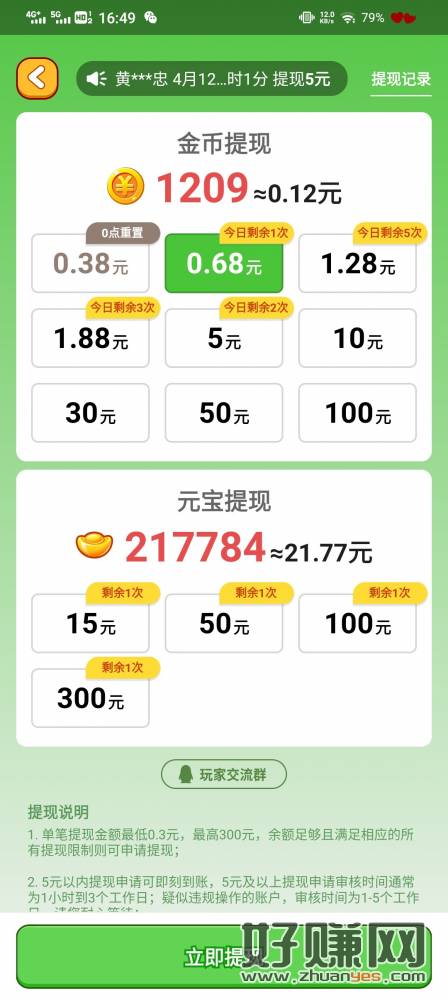 3毛游戏:视频奖励固定0.12-0.14左右,全提现完大概在17块左右,视频都是30秒,比较烦人,提现秒到,第二天会刷新提现次数
