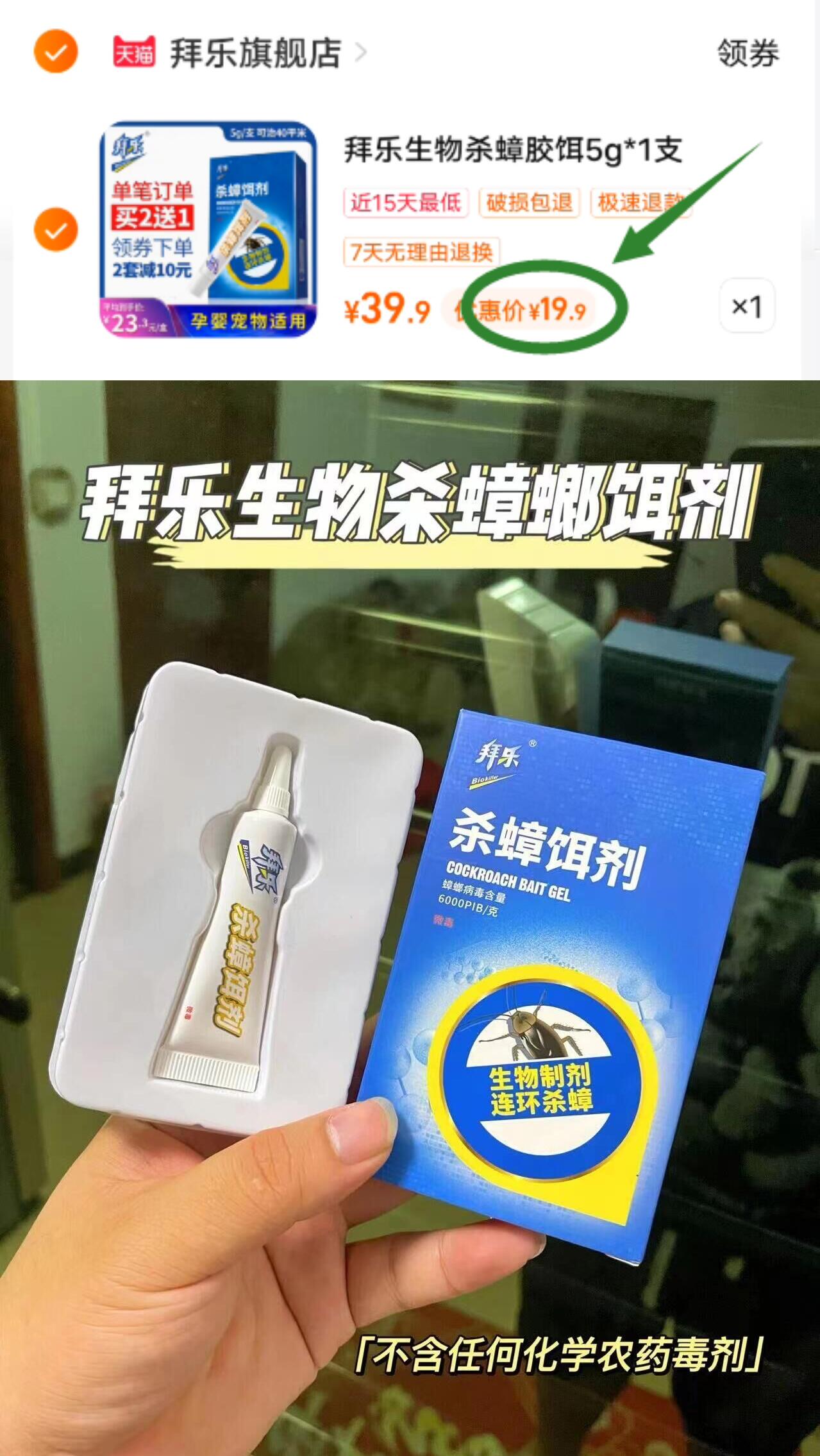 19.9元!武汉大学研发,[ 拜乐 ]杀蟑胶饵剂除蟑神器5g