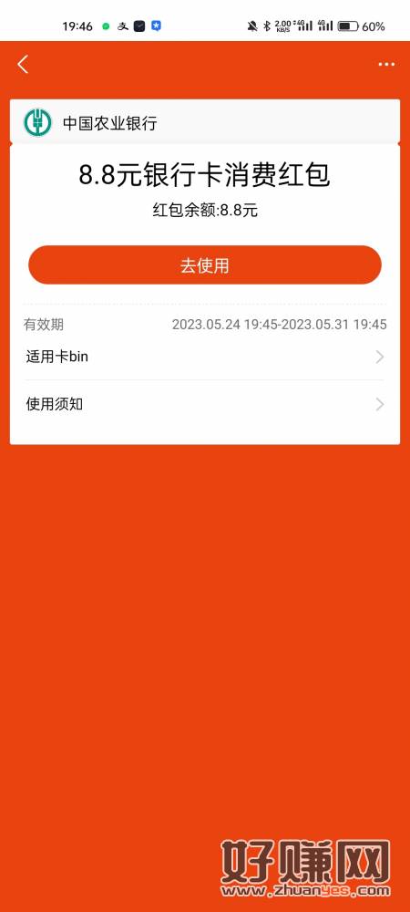 农行随便开一张上饶卡,绑定支付宝8.8,绑定过其他农行卡也可以
