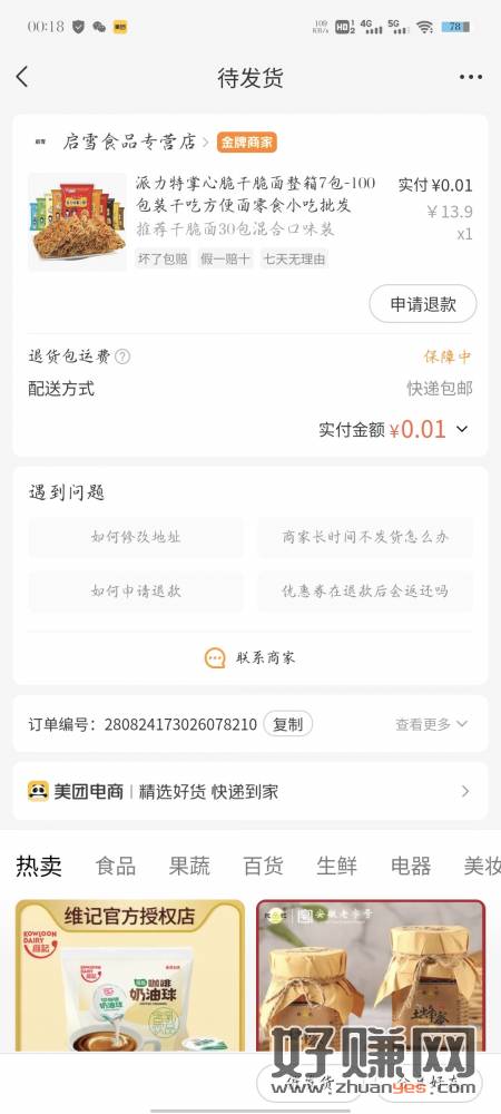 【美团电商】派力特掌心脆干脆面整箱7包-100包装干吃方便面零食小吃批发 0.01元,快戳
