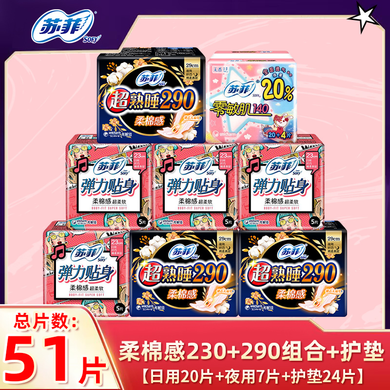 19.9元 苏菲 苏菲卫生巾日夜组合51片