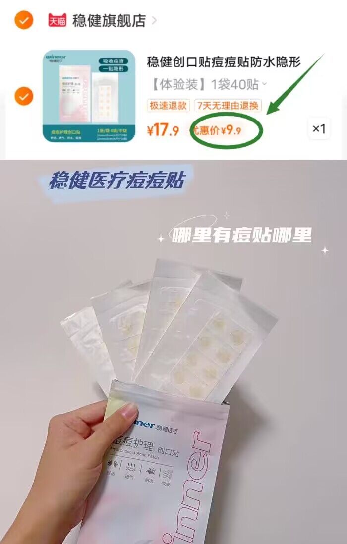 9.9元!油痘肌救星来咯,[ 稳健 ]医用水胶体痘痘贴40贴