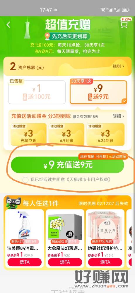 猫超首页超值充赠,充9赠9,下方额外可领3r赠金6.7前到账