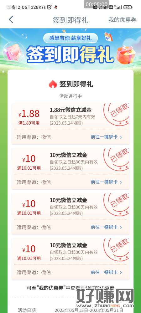 新疆工行代发薪客户搜工行消费季,10的都是信用卡立减金,受众少,符合条件白嫖30+