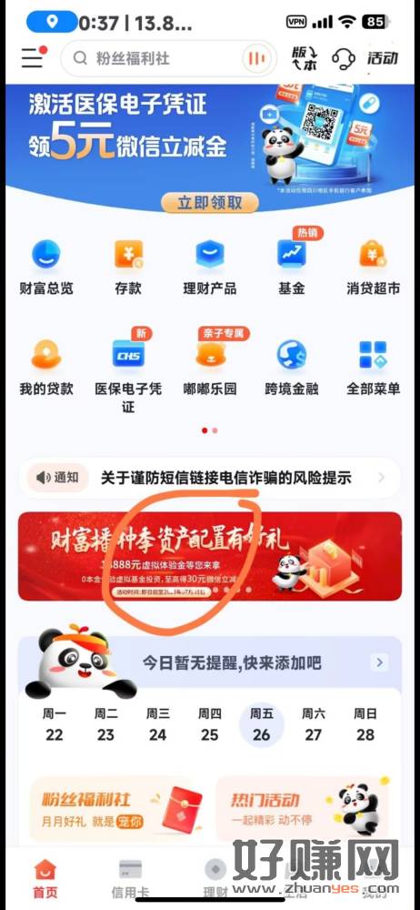 余利宝余额浏览有10红包,卡包还可以刷出来10红包