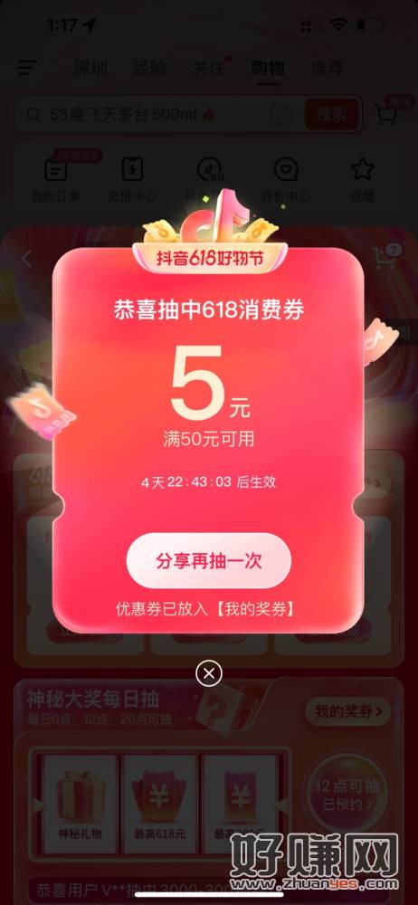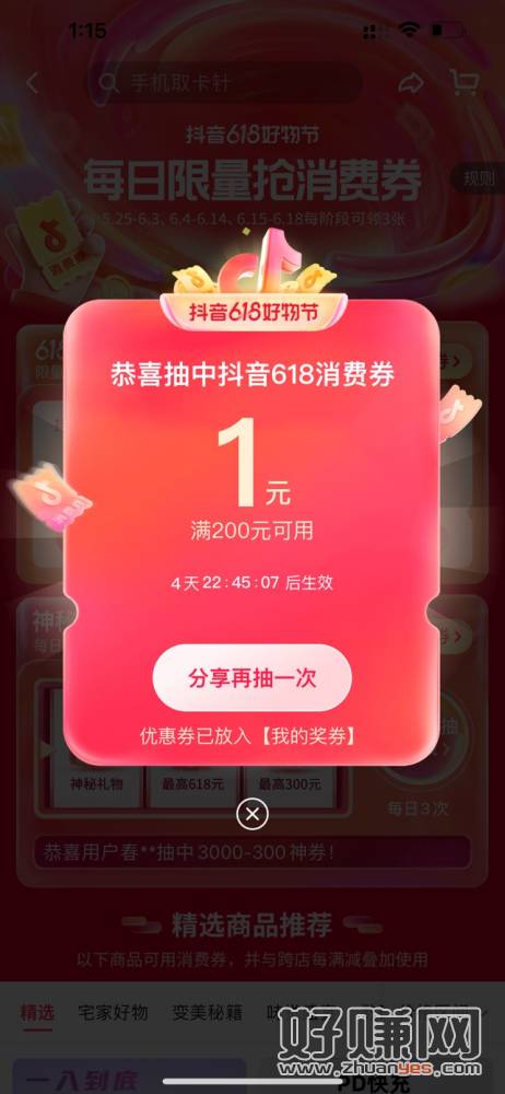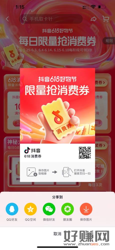 抖音扫码,抢大额消费卷,每天可以抢3次,无头