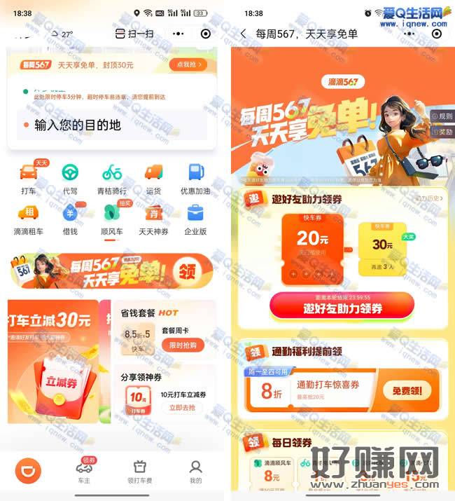 每周567天天享免单 滴滴免费得30元无门槛打车券