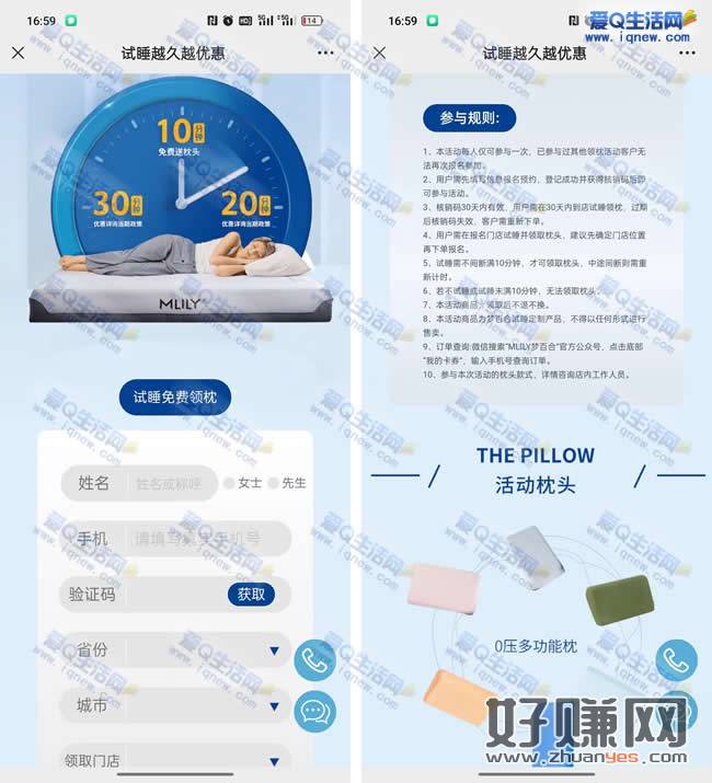 需要到点试睡领枕头,你报名的时候就会显示这个门店还有多少枕头