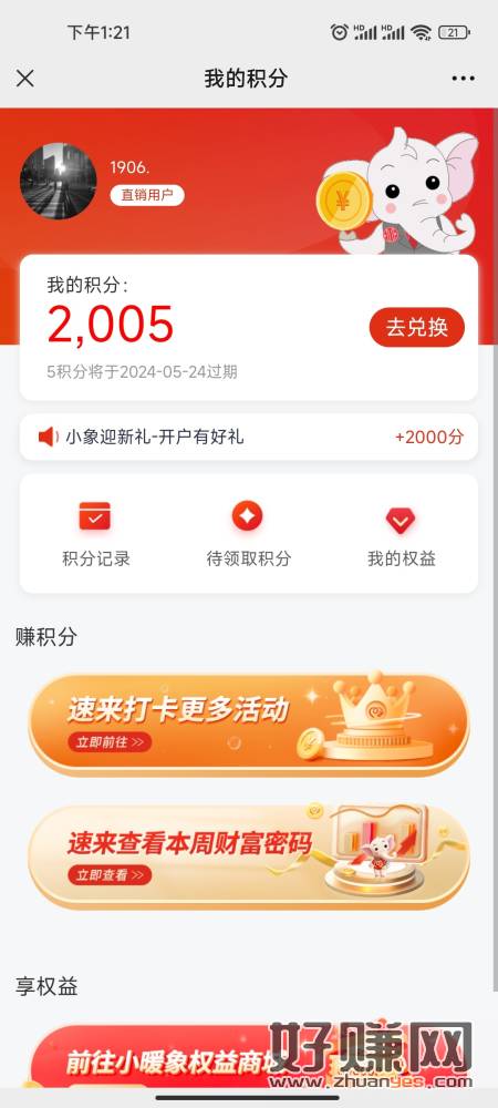 开户送2000积分第二天到,可兑换20ek或支付宝每天10点